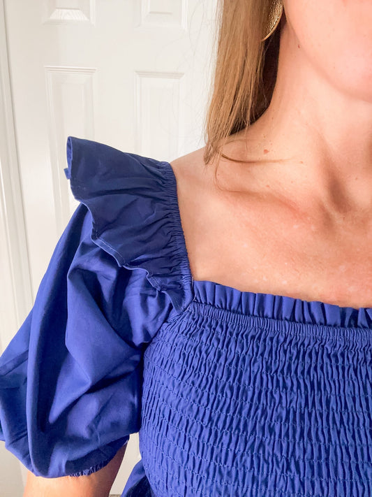 Smocked Tiered Midi Dress with Short Ruffle Sleeves by Umgee